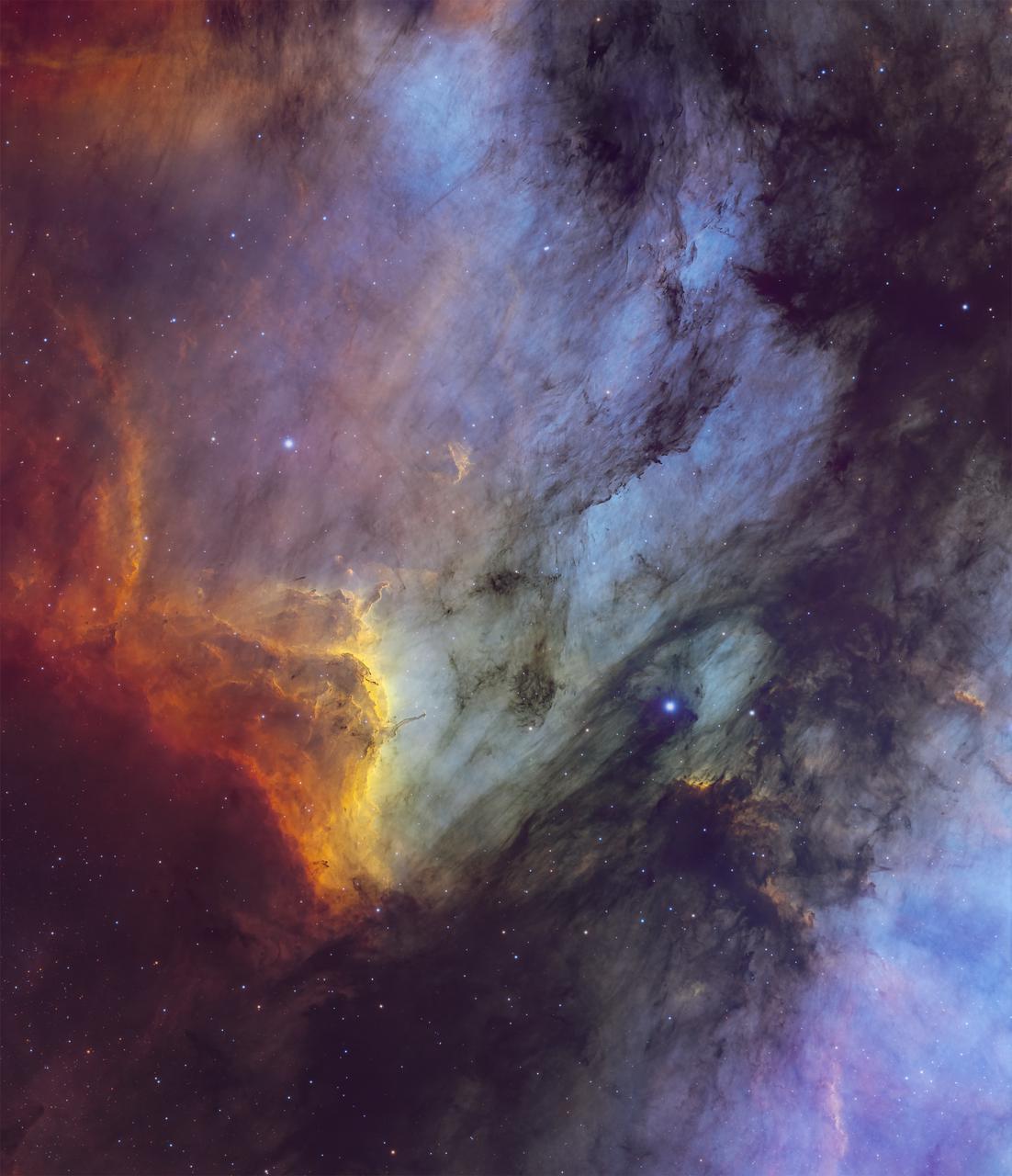 The Pelican Nebula or IC5070 is in the constellation of Cygnus. I am a fan of Fine Art Astrophotography and here is one of the reasons why. This is where our creativity begins, but it never ends; there are simply no limits. With a nebula so rich in various gases, we can edit photos without limits, with contrasts and, above all, with colors to our imagination, without limits.