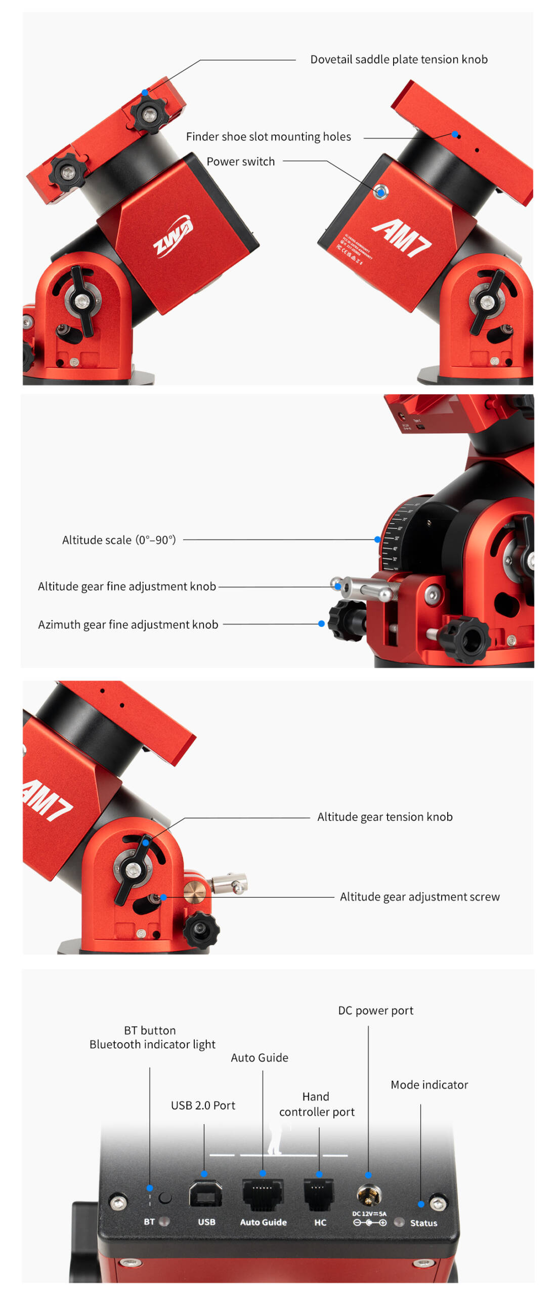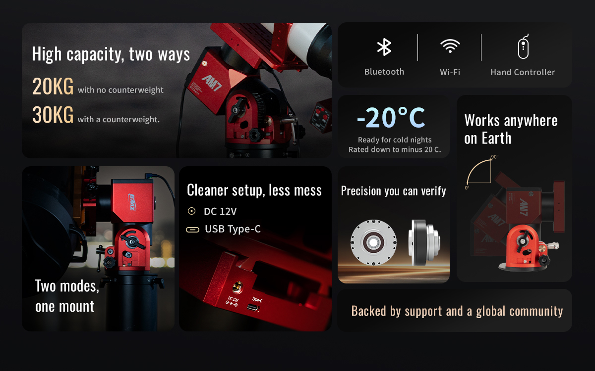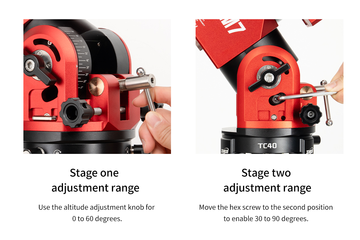 AM7 supports a full 0 to 90 degree altitude adjustment range, so it can be aligned and used almost anywhere on Earth, from the equator to the poles. That makes it a practical choice for travel or a permanent setup, no matter where you observe.