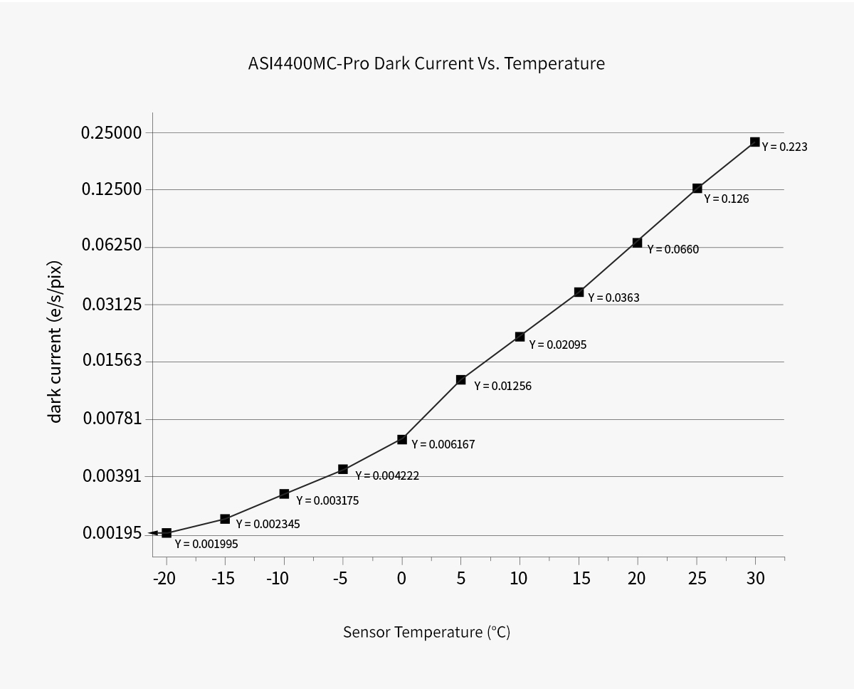 Thanks to the ASI4400MC Pro’s advanced cooling system, thermal noise remains extremely low even during long exposures lasting several minutes. Dark current is a small electrical signal created by heat inside the sensor rather than by incoming light. By keeping the sensor temperature low, the camera minimizes this effect, producing cleaner, higher quality images with smoother backgrounds.