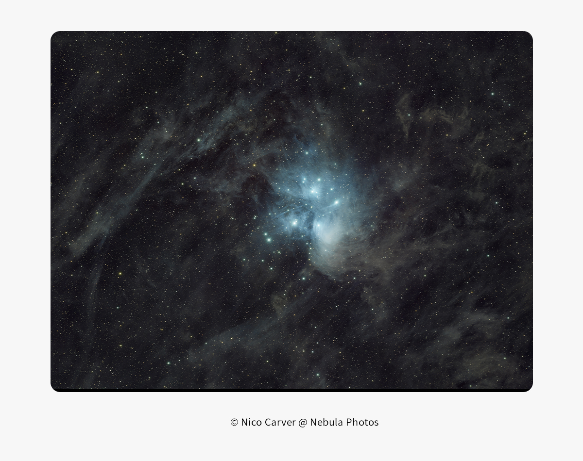 The ASI4400MC Pro uses a full-frame, back-illuminated sensor measuring 36 × 24 mm with a 43.3 mm diagonal. With 44 megapixels and 4.4 μm pixels, it delivers incredible resolution and light sensitivity in every shot. The full-frame format lets you capture the entire field your optics can deliver – no cropping, no lost edges – perfect for wide-field targets and large deep-sky objects. Each pixel supports a full-well capacity of 74,600 electrons, providing exceptional dynamic range. Bright stars retain their natural color and detail, while faint nebula structures and galaxy arms remain beautifully visible. The result is cleaner, more balanced images with outstanding tonal depth across the frame.